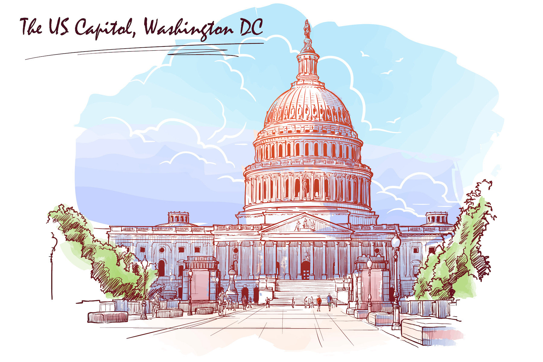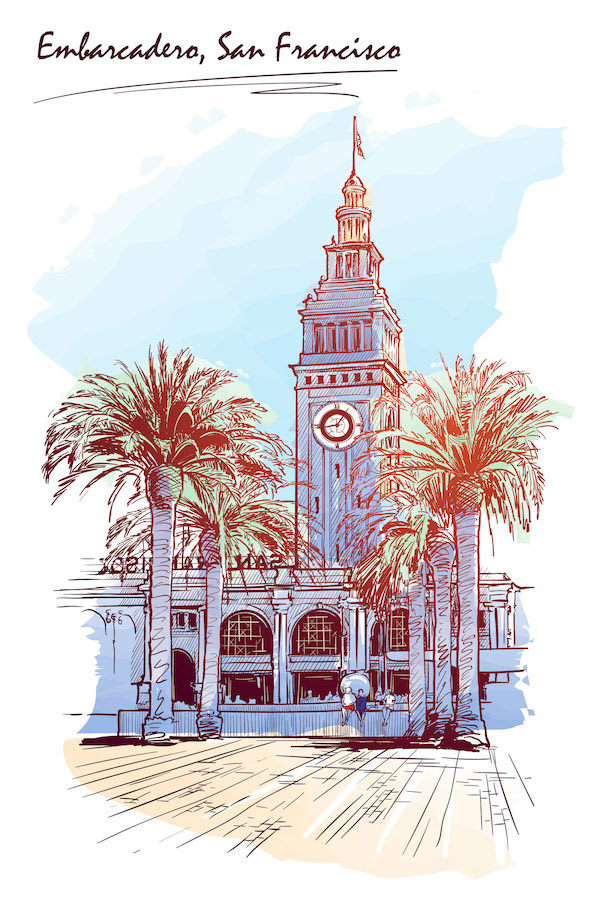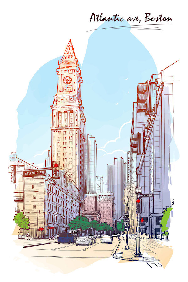 Vector illustrations featuring famous landmarks or depicting urban everyday life.